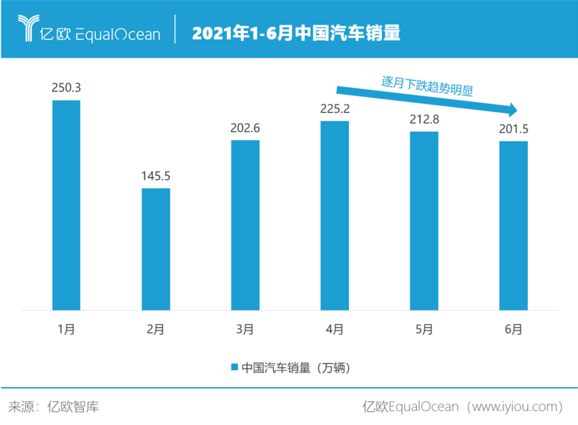 通过观察今年第二季度的汽车销量,亿欧汽车发现,中国汽车月销量在今年第二季度呈现逐月递减的趋势。结合第三季度是中国汽车销售的传统淡季,可以预见的行业趋势是:大部分车企在第三季度的销量前景都不甚乐观。