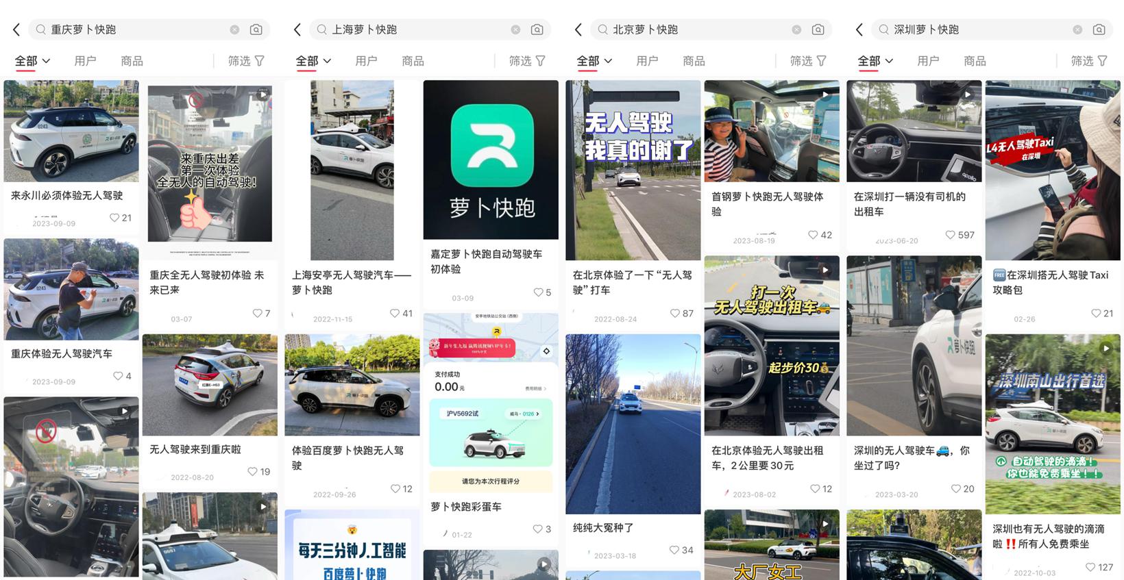 不只是在武汉城市留言板上,翻阅各大社交平台,但凡搜索“武汉 萝卜快跑”,必然会出现急刹、急停、开的太慢等一系列关键词,时间跨度更是从2022年一直延续至近期。