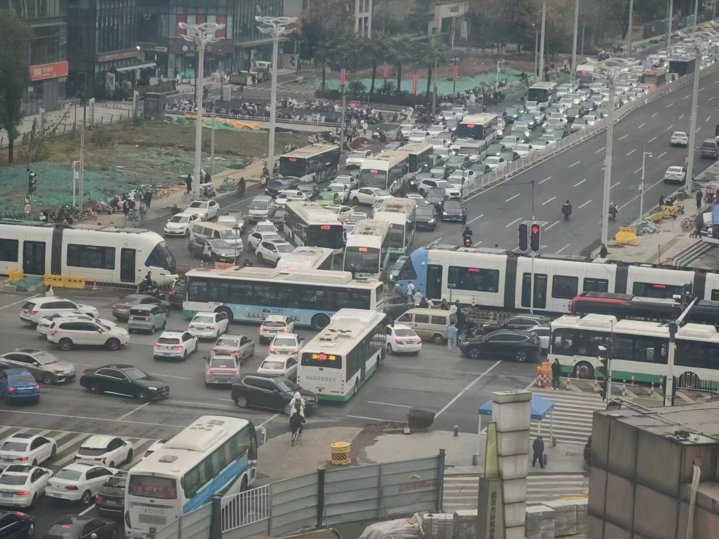 武汉关山大道路口一个平平无奇的早高峰;图片来源:钱二供图