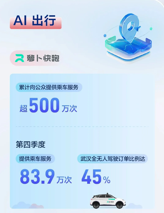 2023年第四季度,武汉全无人驾驶订单占萝卜快跑45%;图片来源:百度