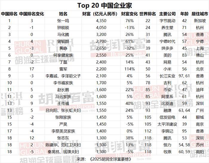 中国富豪榜:曾毓群第四、雷军第八、李书福第十!