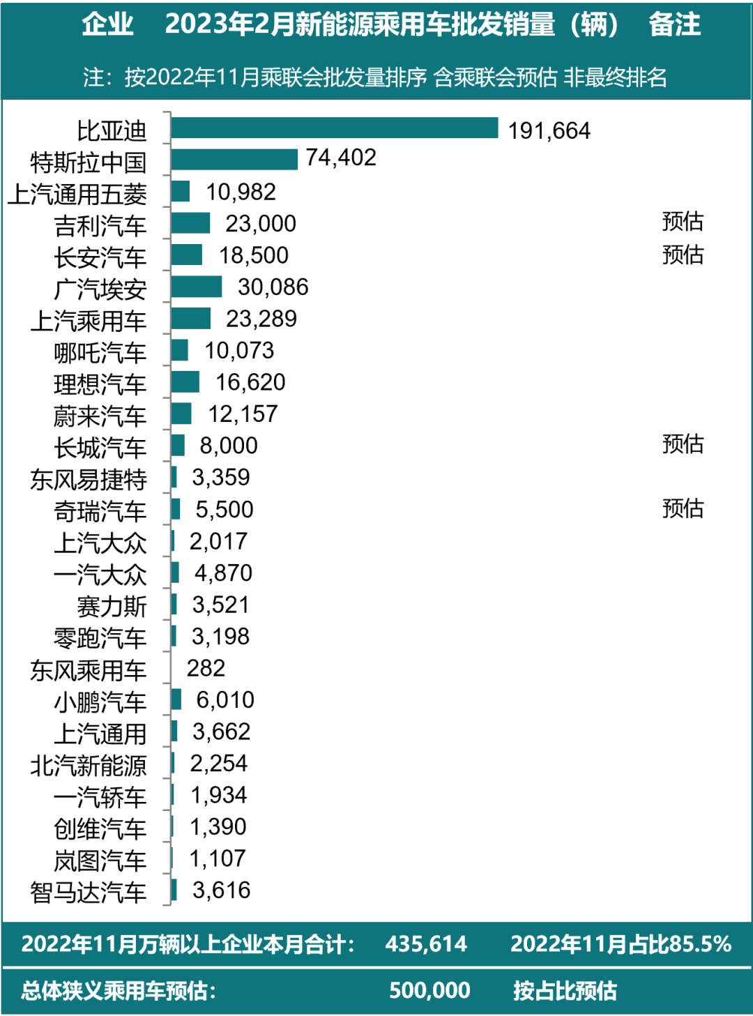 3月3日,乘联会发布了2月新能源乘用车市场的销量预判。考虑到主力企业中的岁末年初产销波动较大,因此乘联会利用2022年11月主力企业销量占比来进行测算。