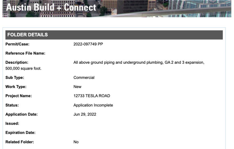 根据特斯拉向奥斯汀市提交的申请,扩建面积是相当可观的,占地约50万平方英尺。据悉,扩建将在现有的Giga Texas大楼的一端完成。