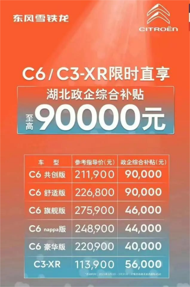 一夜之间,东风雪铁龙C6这款过去无人问津的法系车成为了香饽饽,化身车界顶流,不到一周时间就被买断了货。这一次,东风系汽车的降价力度是历史罕见的,包括东风本田、东风雪铁龙、东风日产、东风标致等在内的东风系汽车,降价都在5w到9w不等,东风雪铁龙C6的综合补贴更是直奔上限而去。